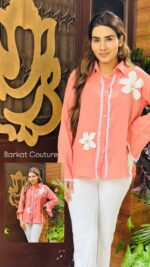 Pure cotton shirt with chikan flower patches with stone work & lace work!